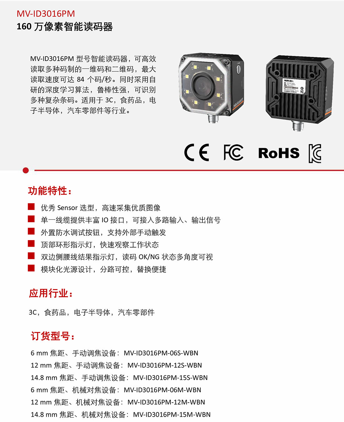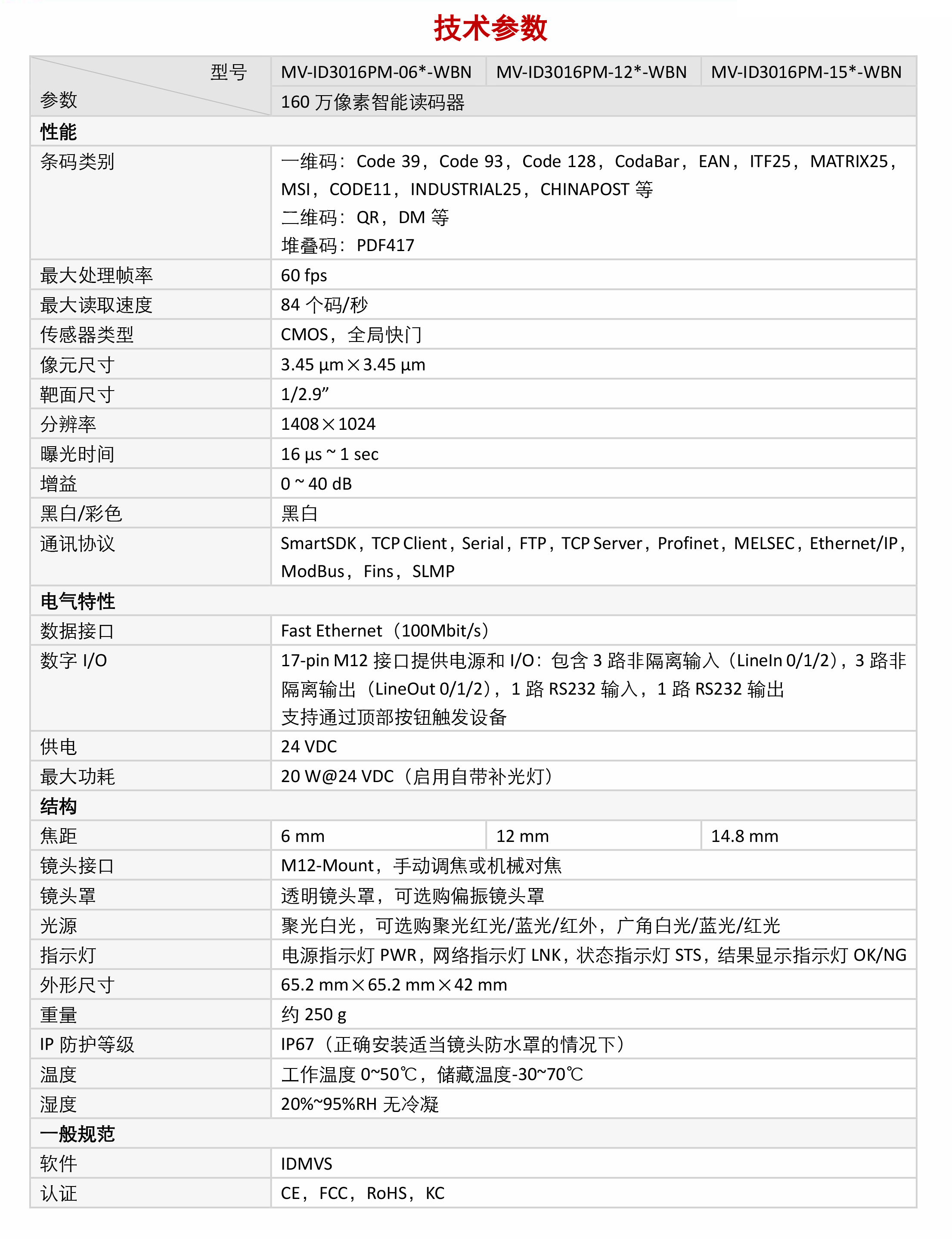 MV-ID3016PM智能讀碼器